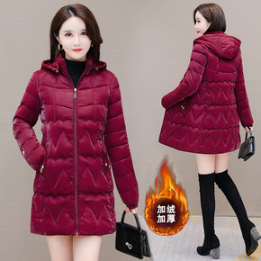 2022新款亮面免洗羽绒棉服女中长款加绒加厚棉衣中...