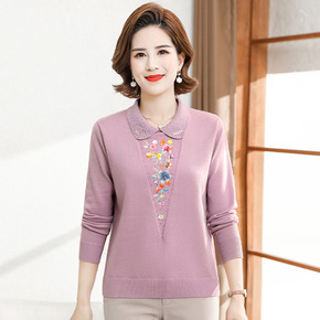 洋气妈妈秋装长袖针织衫女翻领毛衣50岁中老年女装秋...