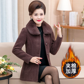 仿羊羔毛外套女中老年妈妈秋冬宽松中长款颗粒羊剪绒皮...