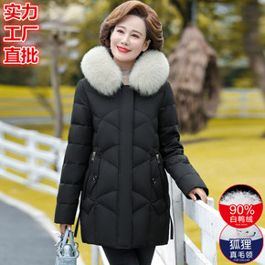 中年妈妈2021年新款羽绒服女中长款时尚潮流白鸭绒...
