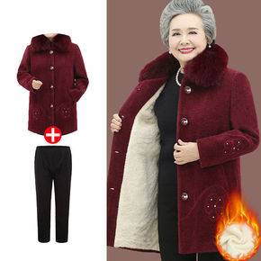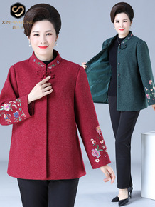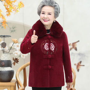 中老年人女装奶奶秋冬装毛呢外套60-70岁80老人...