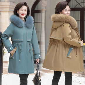 羽绒服中年女冬装新款韩版中长款连帽狐狸毛领休闲百搭...