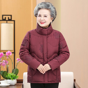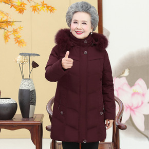 老年人羽绒服女连帽奶奶冬装外套加厚60-70岁老年...