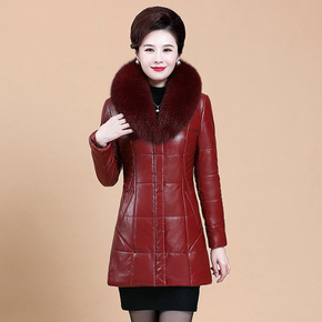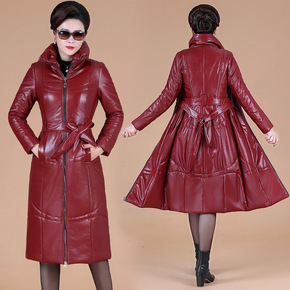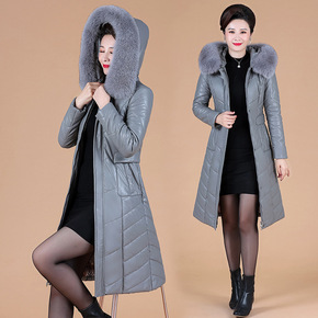 冬季新款中年女装皮羽绒服 大码过膝中长款立领加厚皮...