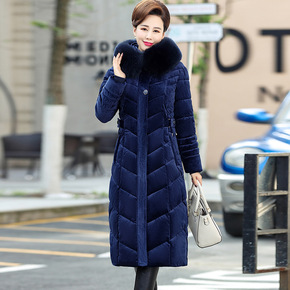 中老年金丝绒棉衣女冬装洋气外套中长款过膝大码妈妈棉...