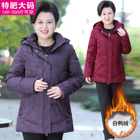 超大码中老年羽绒服女200斤中长款胖妈妈加肥加大码...