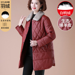 中年妈妈羽绒服冬季新款外套中老年女装洋气皮衣保暖上...