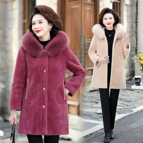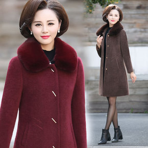 中老年女装水貂绒毛呢大衣2021新款中年妈妈冬装加...