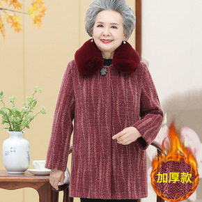中老年人冬装加绒外套女奶奶装冬季中长款加厚毛呢大衣...