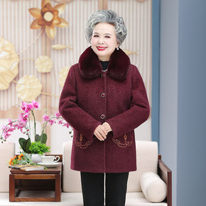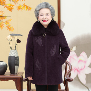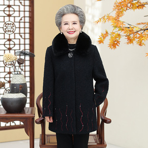 奶奶冬装水貂绒外套中长款老年人女毛呢大衣老太太加绒...