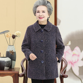 中老年人秋冬装女毛呢外套60-70岁奶奶呢子大衣老...