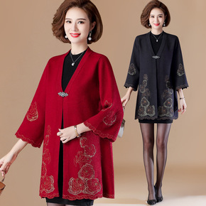 妈妈仿水貂绒外套秋冬装40岁50中老年女装中长款仿...