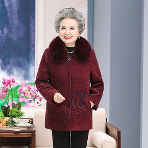 老人衣服女冬装新款加绒加厚仿貂绒外套大码奶奶装中长...