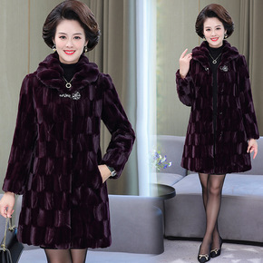 2021妈妈冬装仿水貂绒外套洋气高贵中长款中老年女...