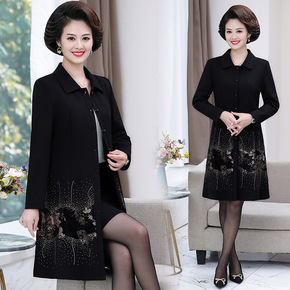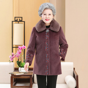 奶奶秋冬装中长款外套妈妈毛呢子大衣太太中老年仿水貂...
