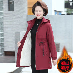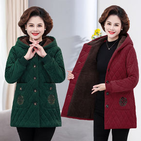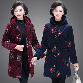 妈妈冬装棉衣加绒加厚长款外套中老年冬季奶奶装保暖棉...