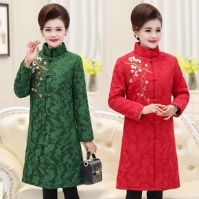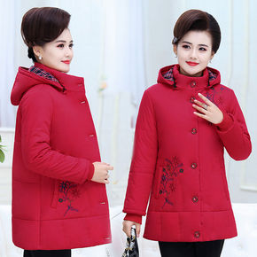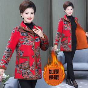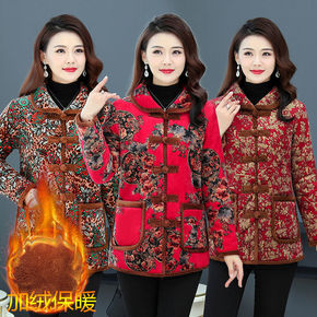 2020秋冬新款民族风中老年妈妈装加绒棉衣外套女中...