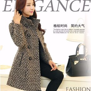 棉服大码风衣格子毛呢外套女装中年妈妈棉衣秋冬季中长...