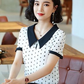 雪纺衫女装夏季新款洋气小衫短袖韩版妈妈波点宽松衬衫...