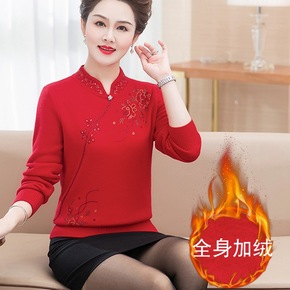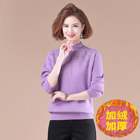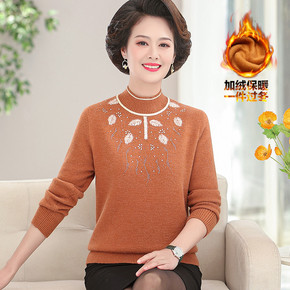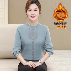 秋冬中老年保暖针织衫加厚加绒女毛衣洋气妈妈装打底衫...