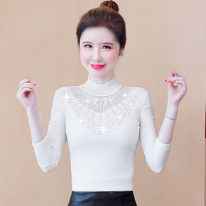 2021秋冬新款修身蕾丝加绒加厚打底衫女保暖中年长...