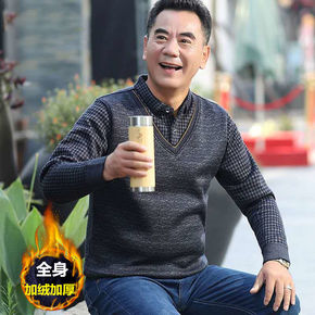 爸爸秋装中年加绒加厚毛衣男士上衣打底衫保暖衣中老年...