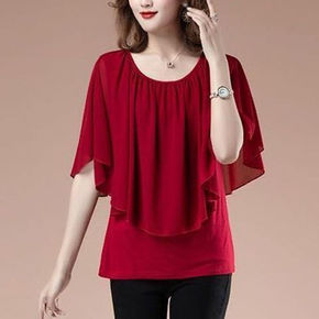 大码女装胖mm上衣雪纺衫短袖女中年妈妈夏装t恤蝙蝠...
