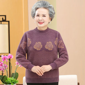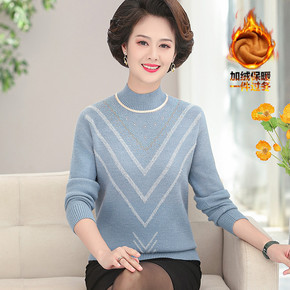冬季新款加绒加厚毛衣女中老年人妈妈装冬季打底衫奶奶...