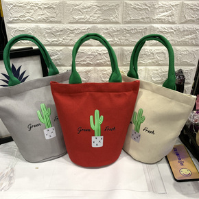 2019新款帆布撞色简约手提水桶款 妈咪包 饭盒包...