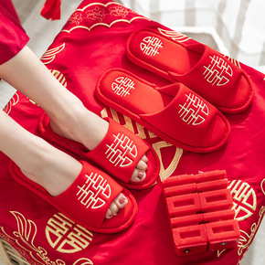 婚礼喜事用品大全结婚喜字拖鞋新婚情侣陪嫁婚嫁嫁妆红...