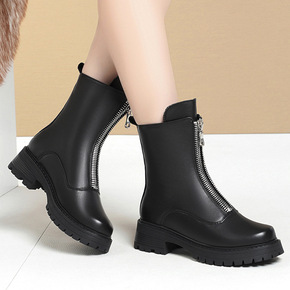 轻奢帆布马丁靴女中筒靴英伦风2021新款百搭厚底机...