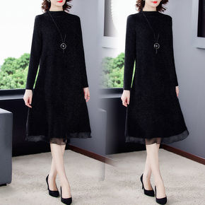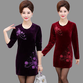 新款妈妈装春装金丝绒连衣裙中年女装中长款显瘦裙子打...