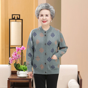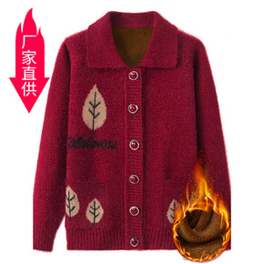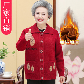 中老年女装羊毛混纺针织衫加绒加厚奶奶装保暖舒适孝心...