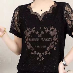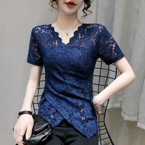 2021网红洋气妈妈短袖显瘦体恤2021年夏季v领...