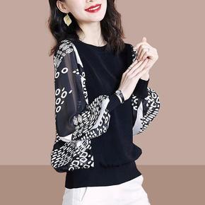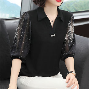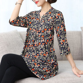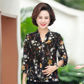 印花雪纺衫七分袖轻薄透气碎花中年妈妈夏秋季新款气质...