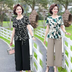 妈妈装2021早春新款套装洋气中老年女装夏装短袖上...
