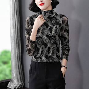 【加绒/不加绒】打底衫女长袖网纱T恤女小衫秋冬新款...