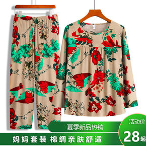 中老年夏季套装女妈妈薄款夏装长袖T恤衫50岁60中...