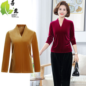 妈妈装春季新品小衫2022女士洋气T恤金丝绒薄款时...