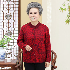 奶奶秋冬开衫外套2021年老年人妈妈毛衣针织衫外穿...