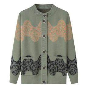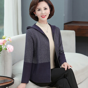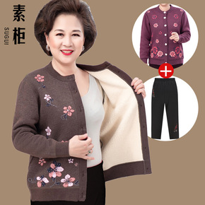 中老年人外套女妈妈装加绒加厚外套奶奶针织衫老太太秋...