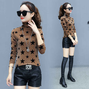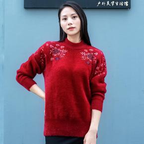 2021秋冬季仿貂绒烫钻提花针织衫上衣半高领毛毛中...