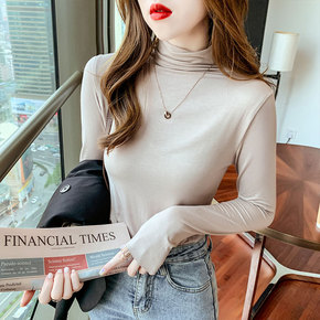 半高领莫代尔打底衫女秋冬内搭2021堆堆领紧身上衣...