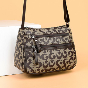 妈咪包尼龙料印花多功能三层大容量单肩斜挎中年女士包...