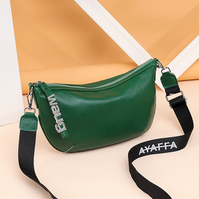 新款全皮女包大容量饺子包气质妈咪斜挎包韩版时尚单肩...