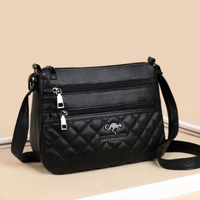 2021新款简约女士菱格包包大容量中年包多层软皮质...