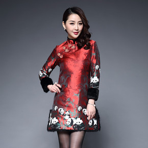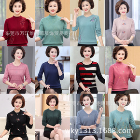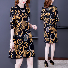 批发中年女装妈妈秋冬装圆领长袖针织连衣裙中长款加厚...