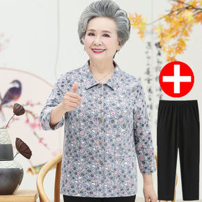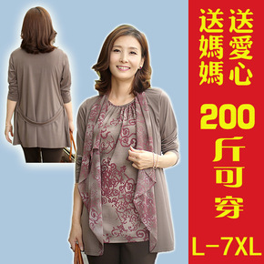 春秋新款中老年加肥加大码200斤妈妈装奶奶装假两件...