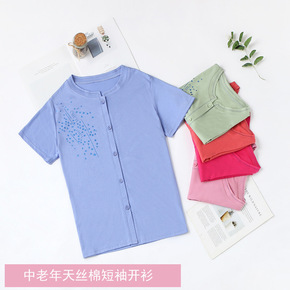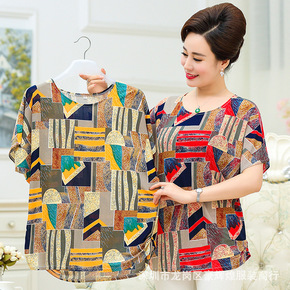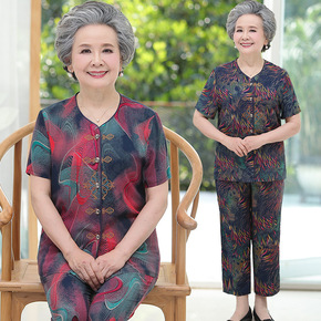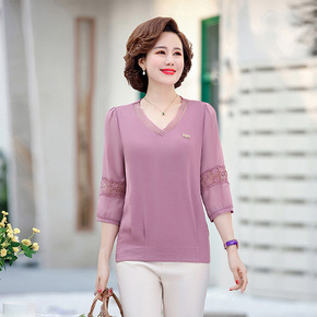 婆婆衣服夏装棉女太太妈妈有领...