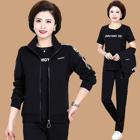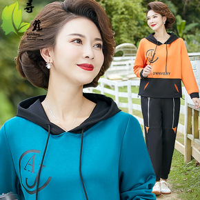 【祥】妈妈秋季套装2021新款女装卫衣中老年休闲圆...